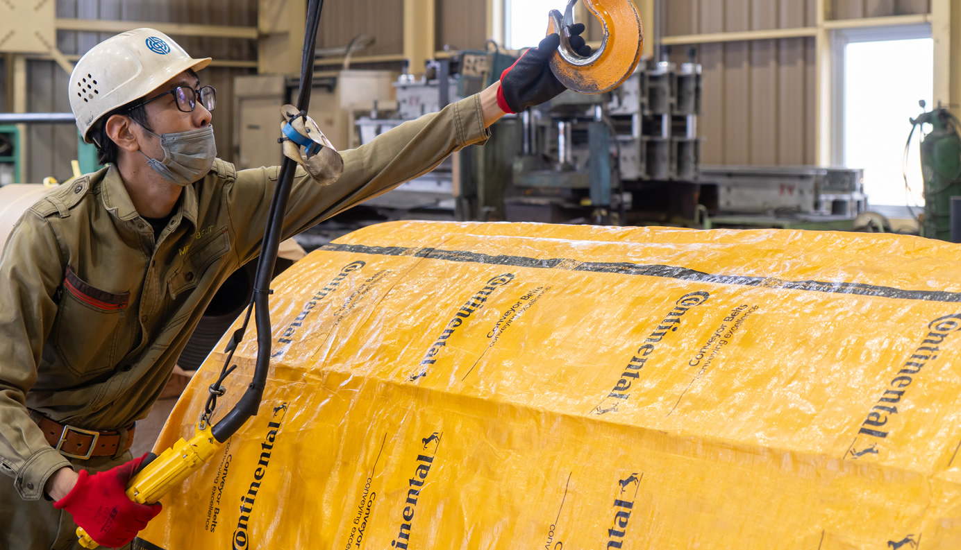 大型ベルトもお任せください! Conveyor belt replacement work available